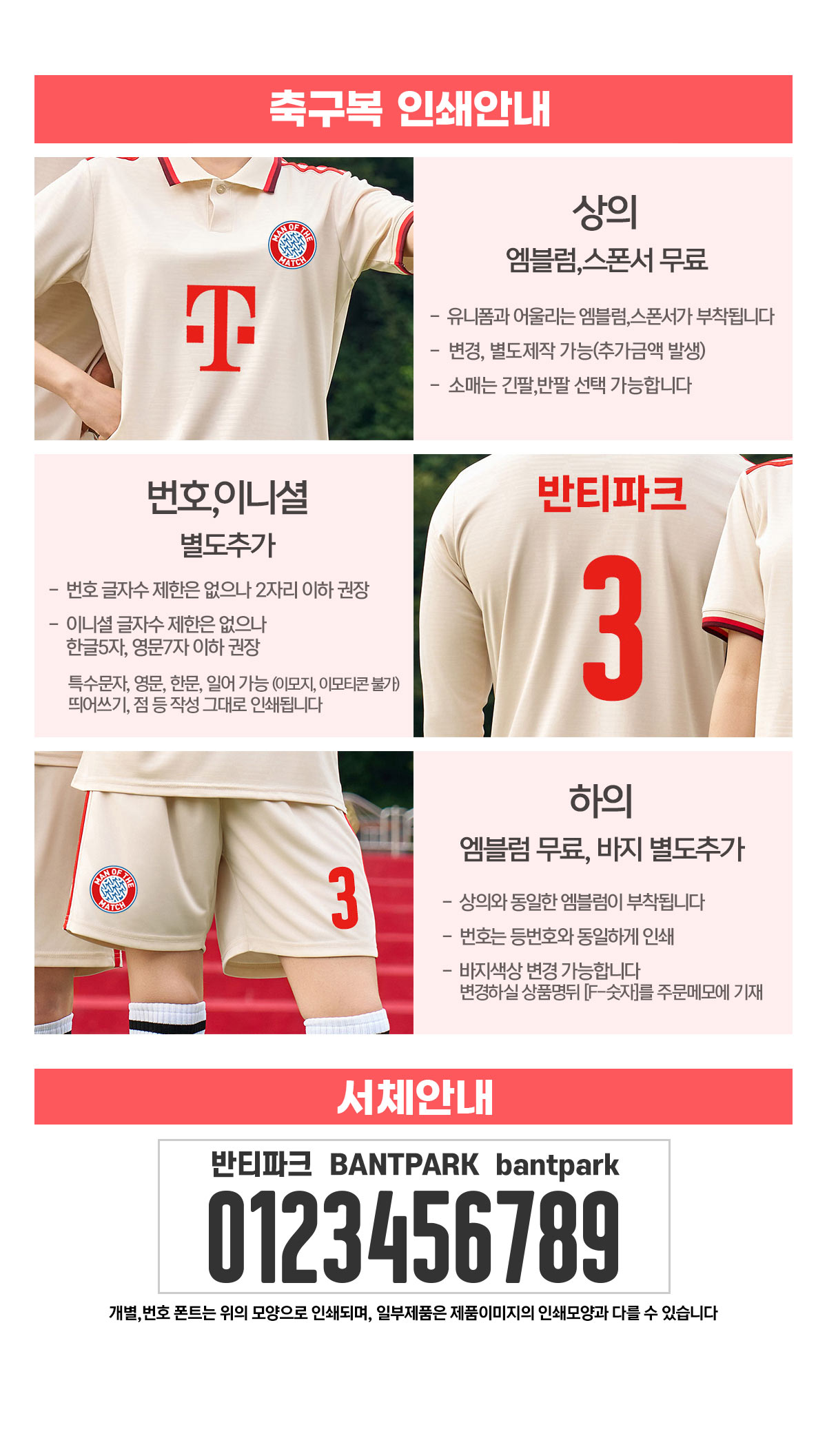 [반팔/긴팔★필수선택] + 하의 + 번호,이니셜 작성