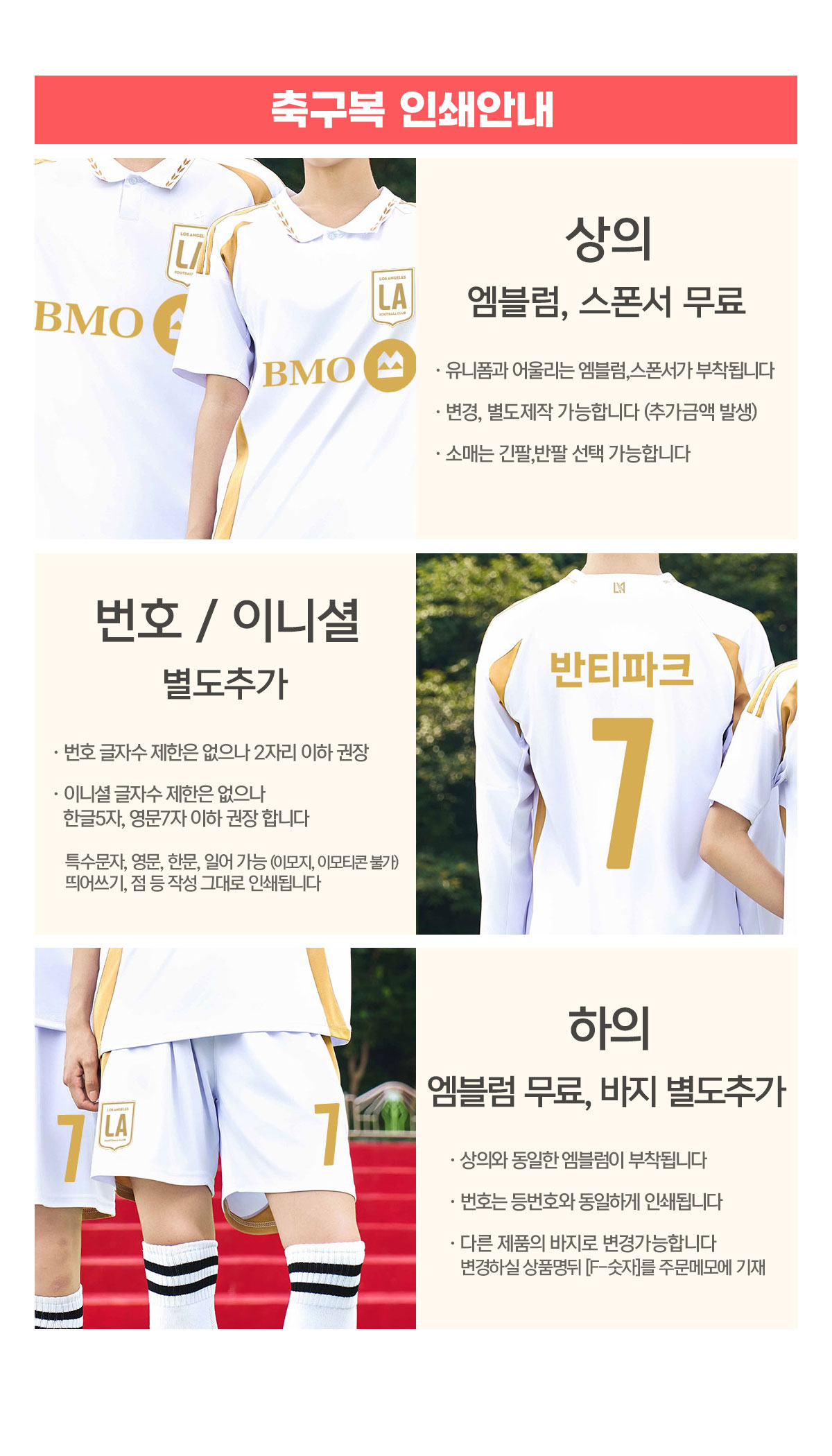 [반팔/긴팔★필수선택] + 하의 + 번호,이니셜 작성
