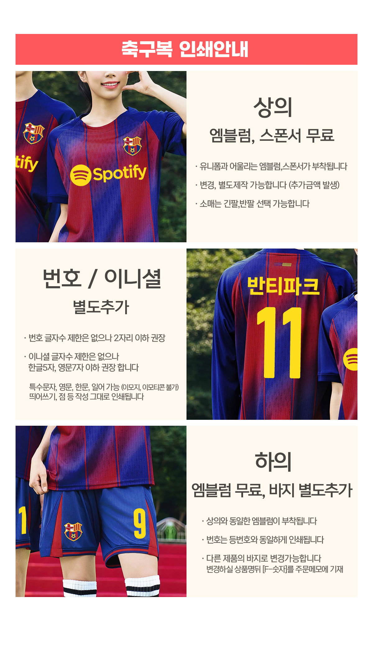[반팔/긴팔★필수선택] + 하의 + 번호,이니셜 작성