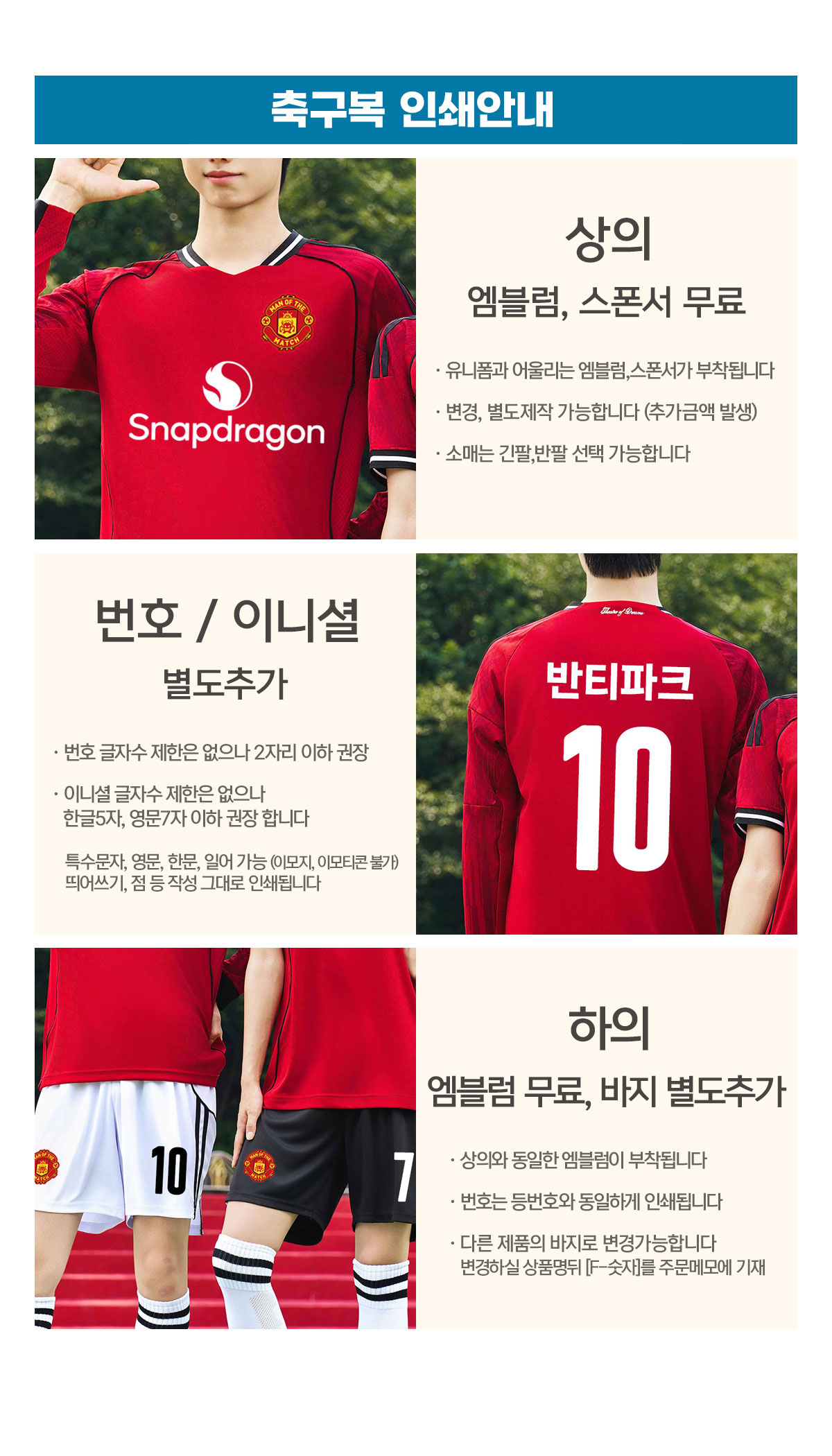 [반팔/긴팔★필수선택] + 하의 + 번호,이니셜 작성