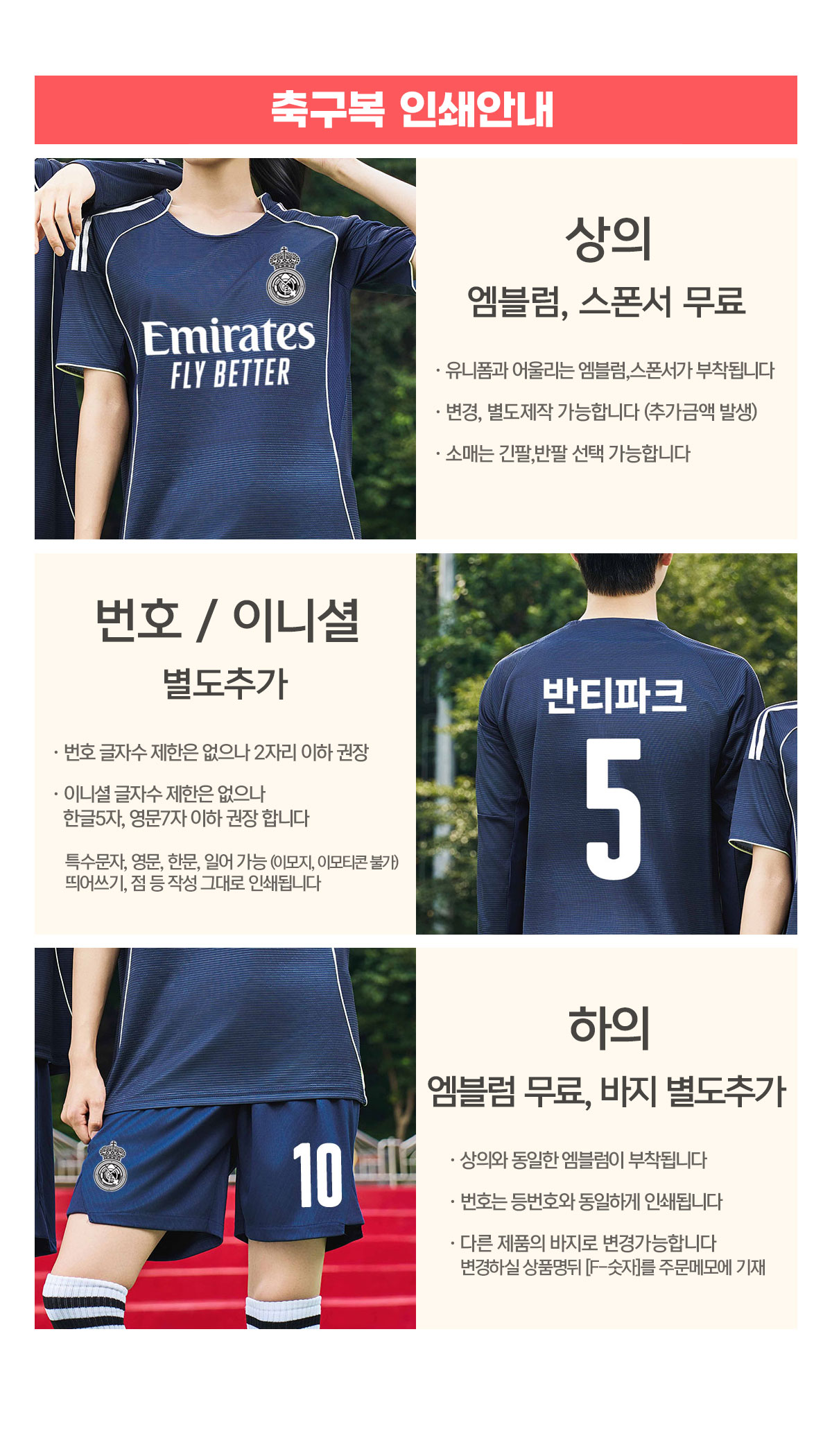 [반팔/긴팔★필수선택] + 하의 + 번호,이니셜 작성