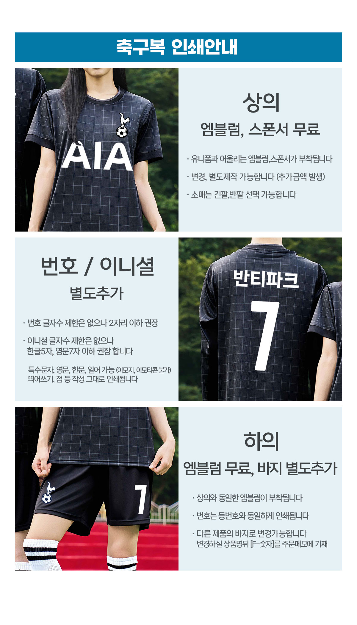 [반팔/긴팔★필수선택] + 하의 + 번호,이니셜 작성