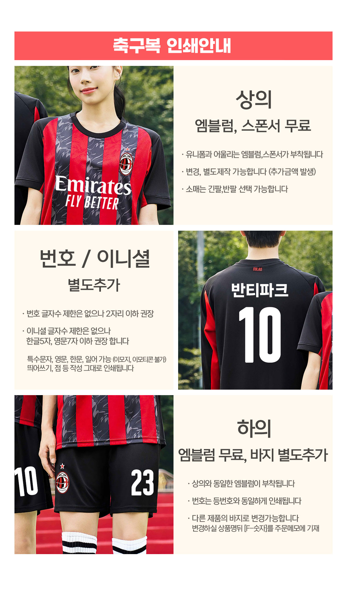 [반팔/긴팔★필수선택] + 하의 + 번호,이니셜 작성