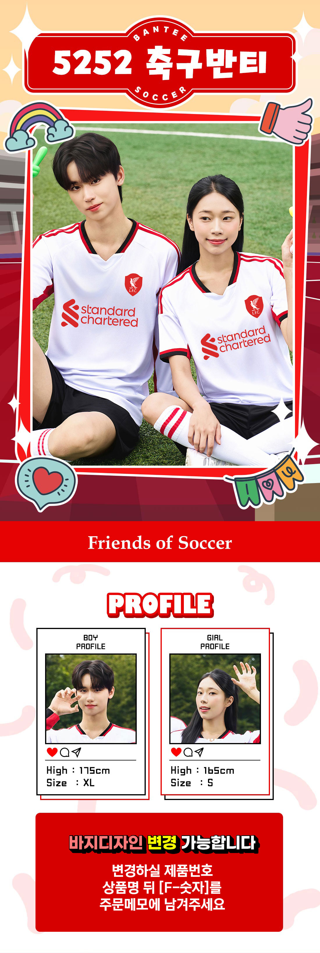 F5252 축구반티 [빅사이즈 가능] - BkWh(Rd)