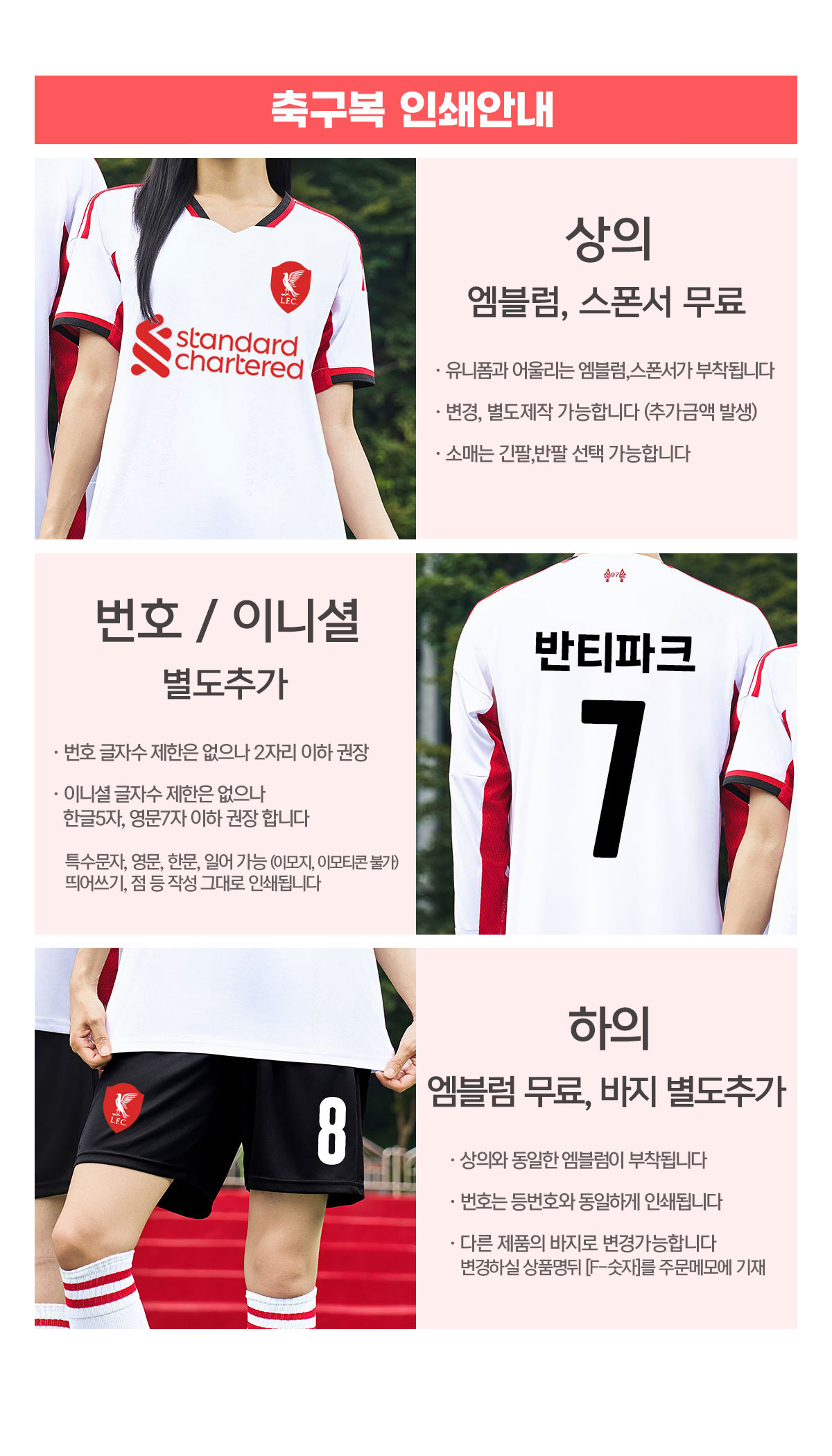 [반팔/긴팔★필수선택] + 하의 + 번호,이니셜 작성