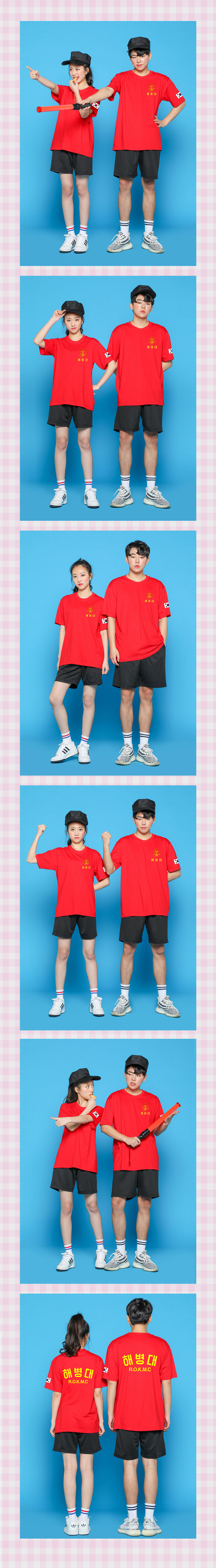 해병대 레드 반팔 라운드 면티셔츠 - 왼가슴,팔,등판 인쇄포함
