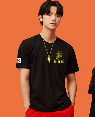 해병대 검정 반팔 라운드 면티셔츠 - 왼가슴,팔 인쇄포함