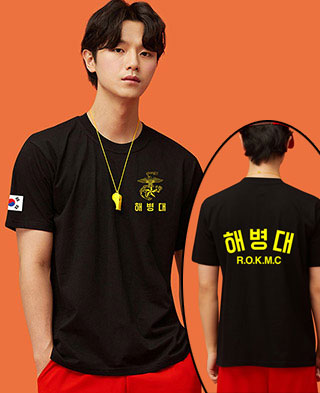 해병대 검정 반팔 라운드 면티셔츠 - 왼가슴,팔,등판 인쇄포함