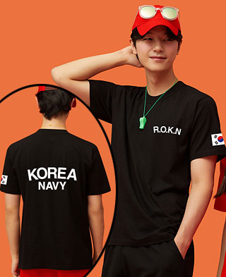 해군 ROKN 검정 반팔 라운드 면티셔츠 - 왼가슴,팔,등판 인쇄포함