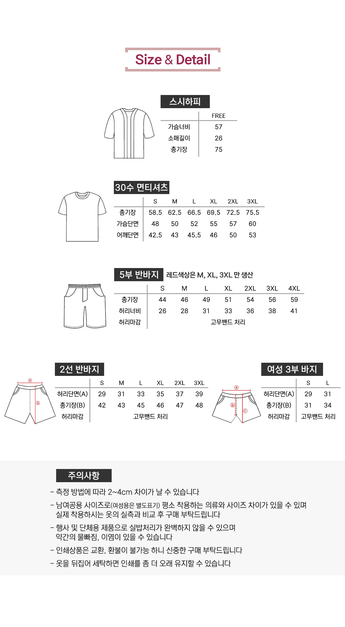 사이즈 및 수량
