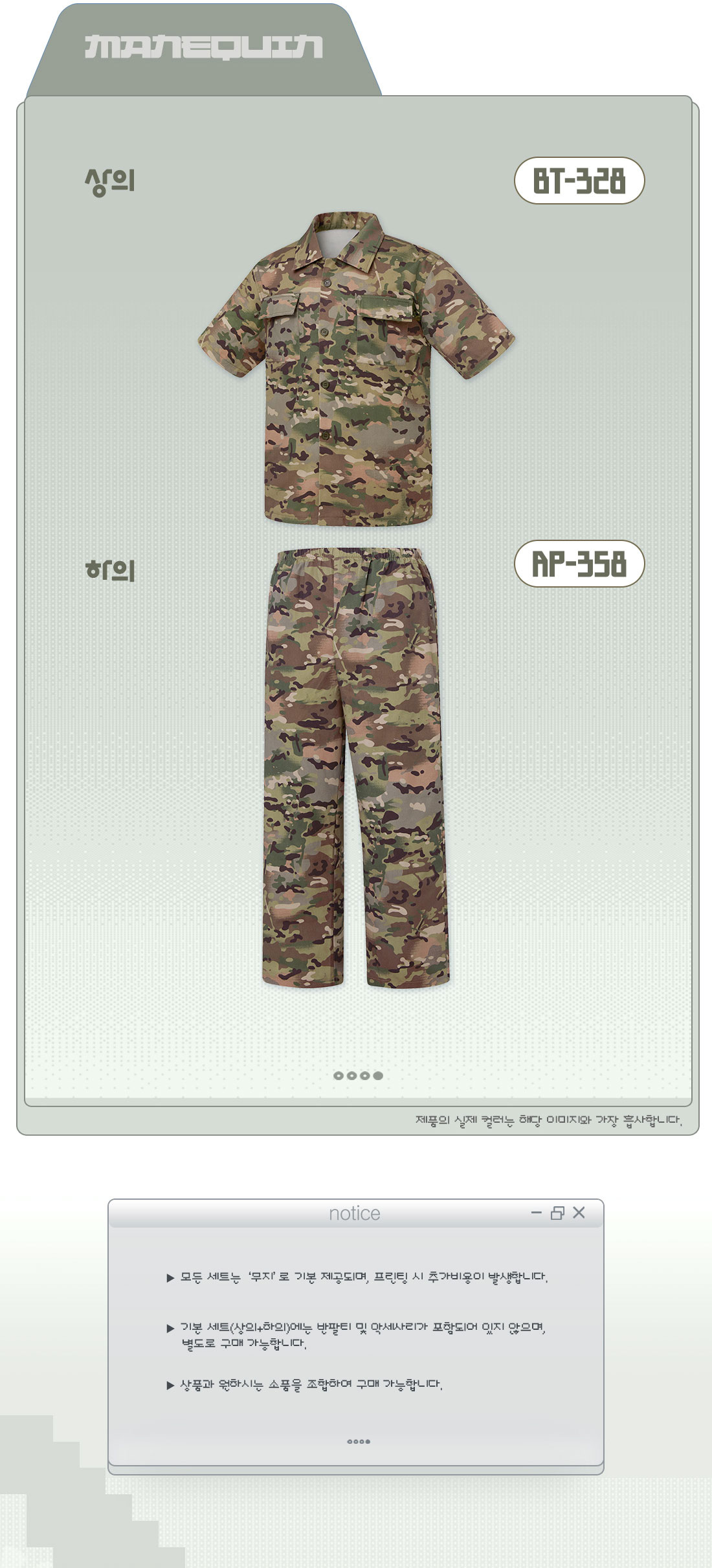 US 카모 군복 반팔 상의 [B-328] - 예약주문(행사일을 정확하게 입력해주세요)