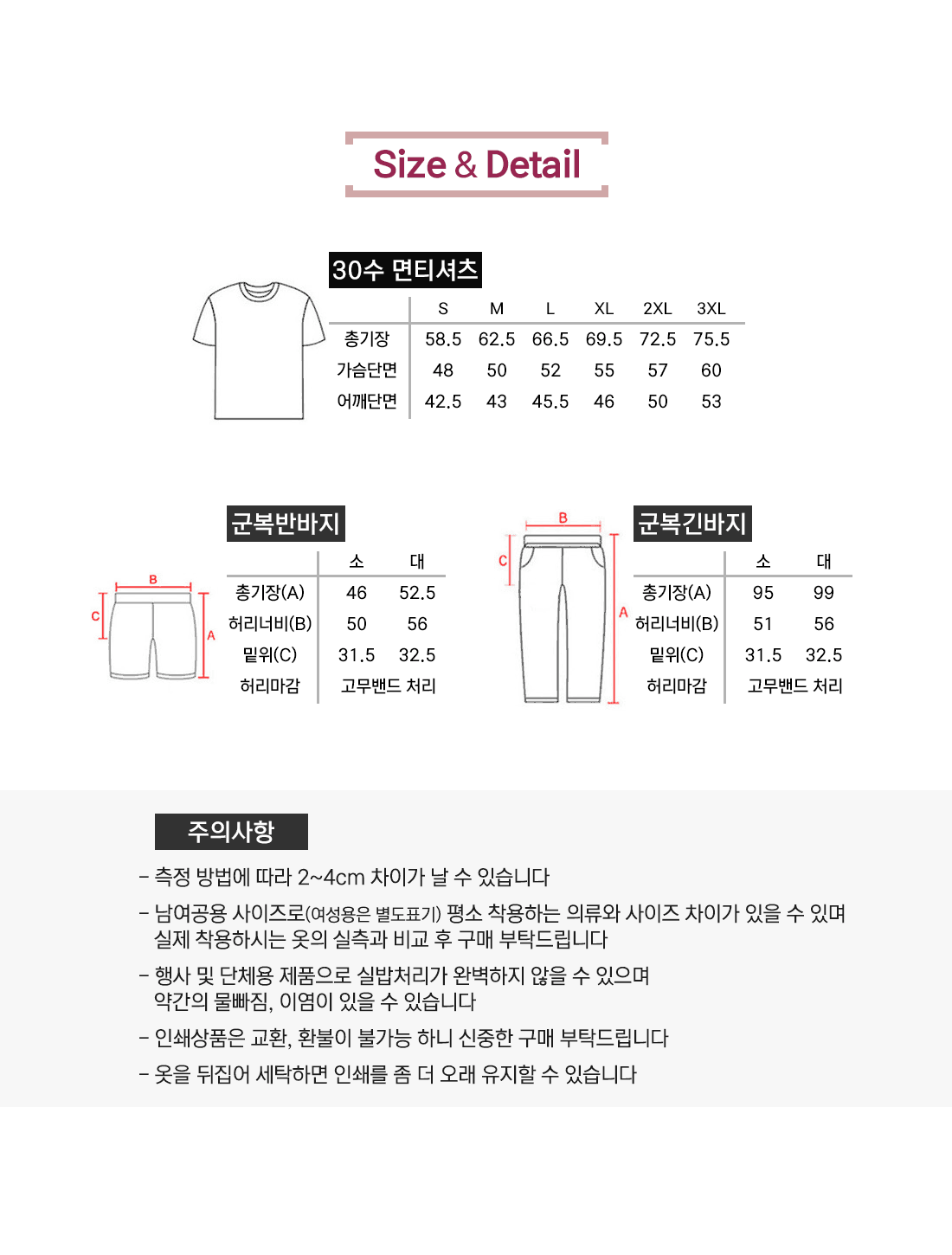 사이즈 및 수량
