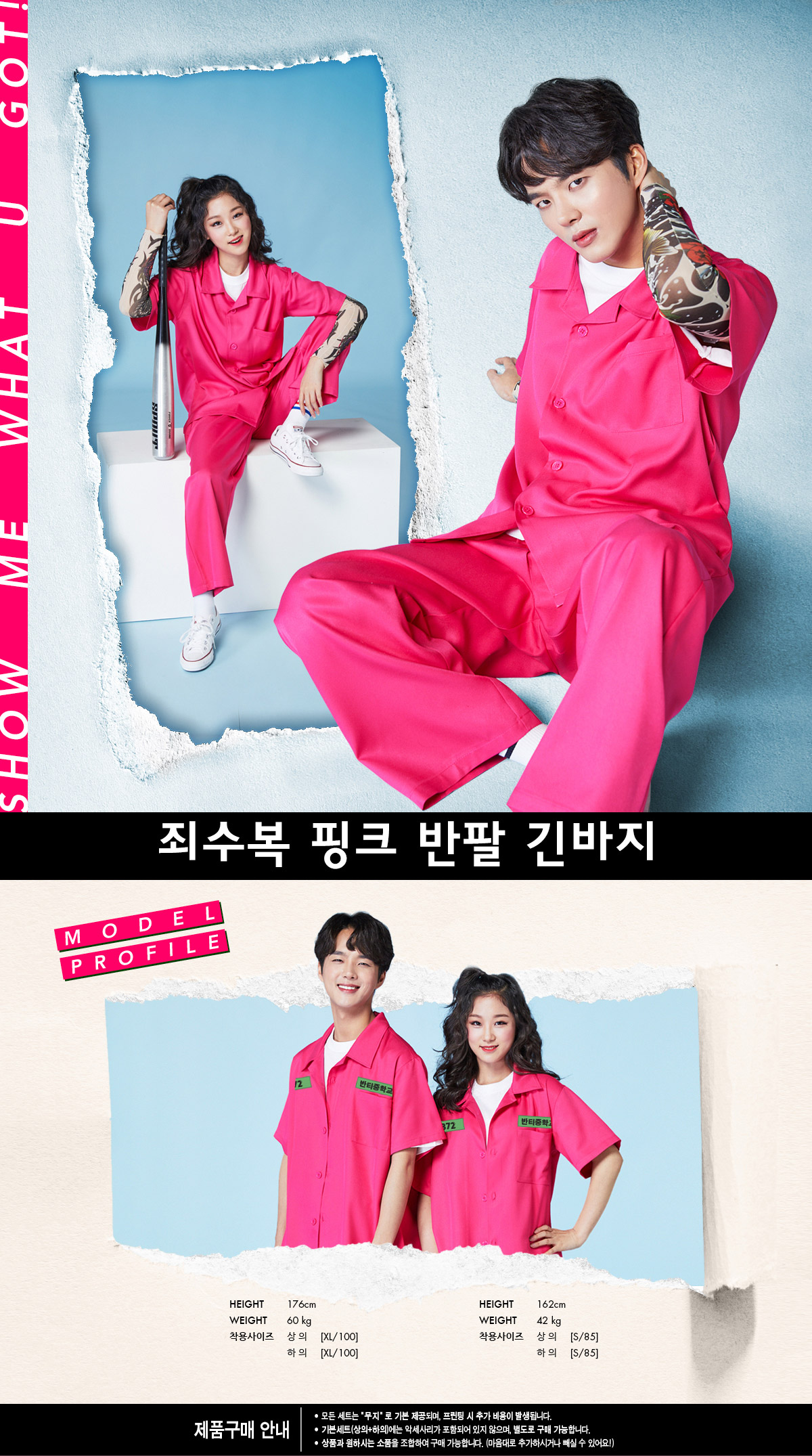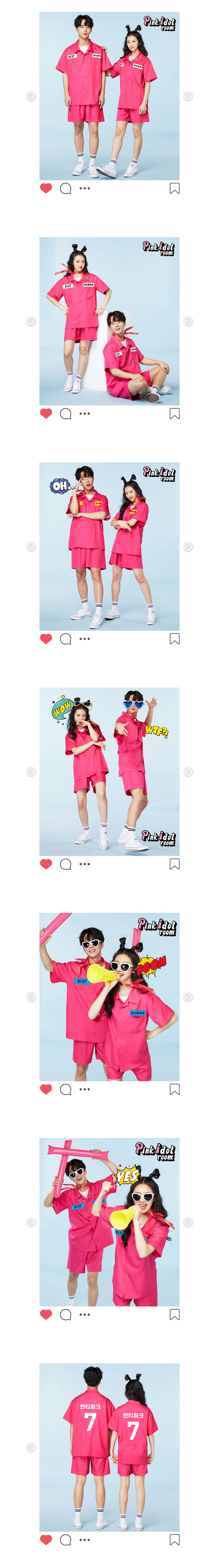 ★모음전★ 죄수복반티 상하세트 [핑크]