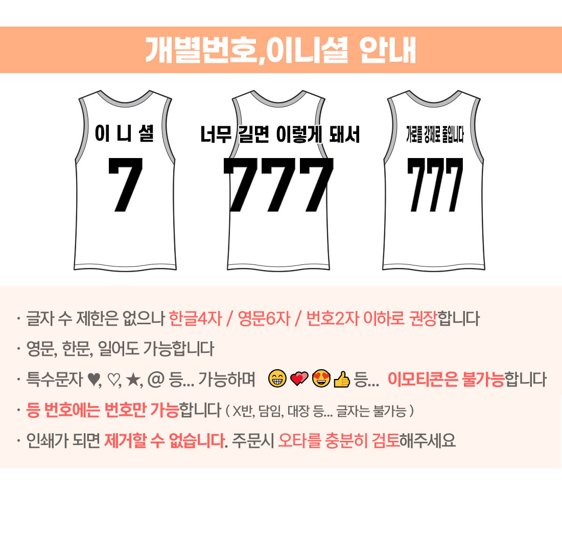 시즌중엔 인쇄변경이 불가능 합니다